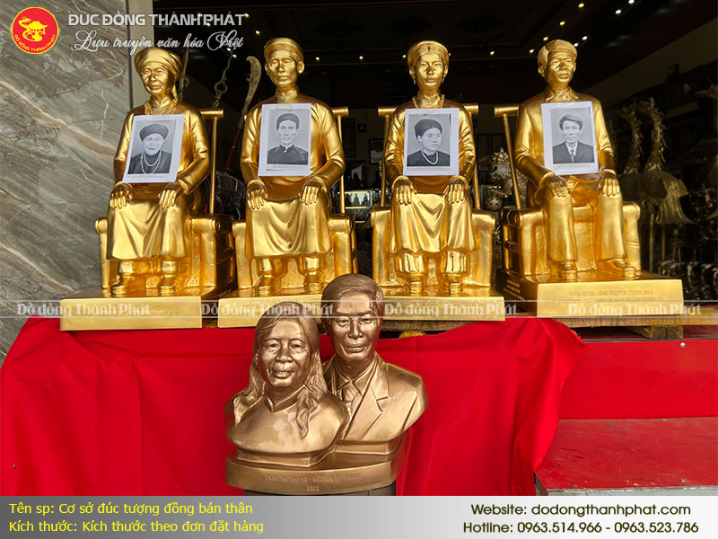 Trong số những sản phẩm chúng tôi tạo ra, "Đúc Tượng Đồng Bán Thân" nổi bật với sự tinh xảo và độc đáo. Quá trình đúc tượng chân dung bắt đầu từ việc nhận một tấm hình chụp chính diện rõ nét. Từ đó, chúng tôi mất khoảng 25-30 ngày để hoàn thành một bức tượng, với 10 ngày đầu tiên là quá trình tạo mẫu quan trọng nhất. Quý khách hàng có cơ hội giám sát và tham gia vào quá trình này, đảm bảo sản phẩm cuối cùng giống 98% với hình gốc. Để biết thêm chi tiết, hãy truy cập Đúc Tượng Đồng Bán Thân.