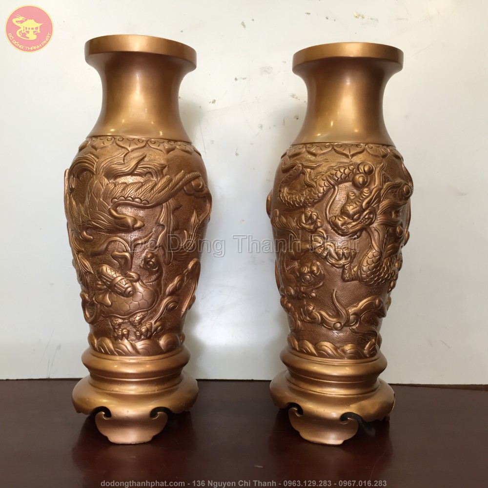 Hình ảnh: Lọ Hoa Khảm Long Phụng Bằng Đồng Đỏ Cao 50 cm