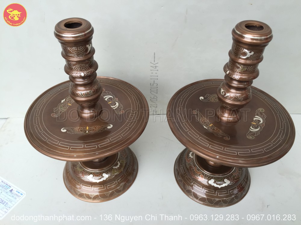 Chân nến ngoài việc để thắp sáng tăng sự uy nghiêm cho bàn thờ thì nó còn mang ý nghĩa như là thứ để liên lạc âm dương với thế giới bên kia. Với các nét chạm khảm tinh tế với những hoa văn uyển chuyển quanh thân và mâm nến. Mỗi một chân nến lại mang một ý nghĩa biểu tượng khác nhau, chân nến bên trái tượng trưng cho mặt trời, bên phải tượng trưng cho mặt trăng