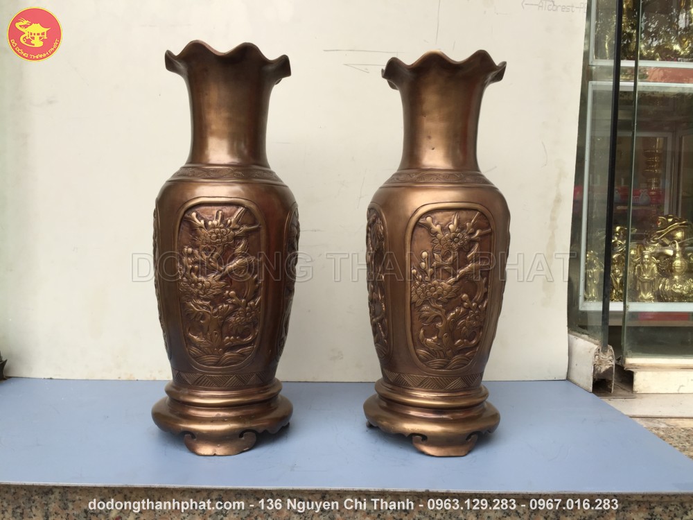 Hình ảnh: Lọ hoa bằng đồng tứ quý Tùng Cúc Trúc Mai cao 55 cm