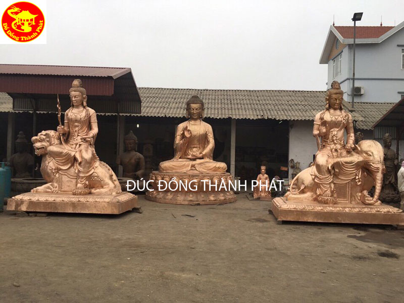 Đúc Bộ Tượng Phật Tam Tôn Tượng Phật Bổn Sư Thích Ca Mâu Ni, Bồ Tắt Văn Thù Phổ Hiền Bồ Tát cao 4 m