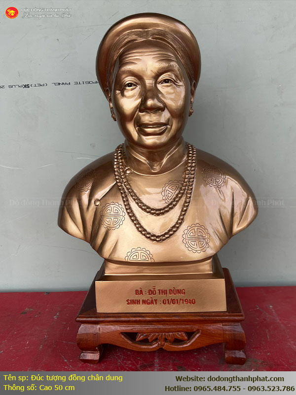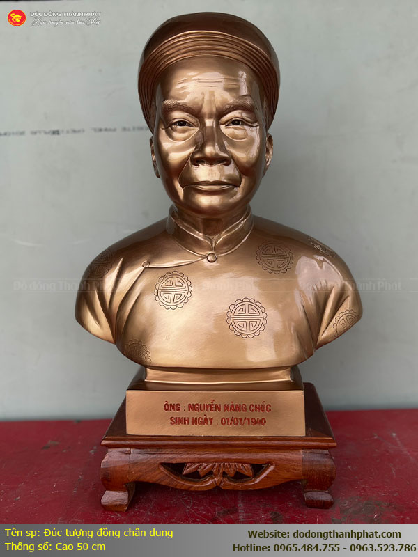 Tượng bán thân bằng đồng là một loại tượng chỉ tạc lại phần đầu và nửa thân trên của người được tạc. Đây là một loại hình nghệ thuật có từ lâu đời và thường được dùng để tôn vinh các danh nhân, người có công lớn hoặc để làm kỷ niệm. Tại Đồ đồng Thành Phát, chúng tôi chuyên nhận đúc các bức tượng bán thân với độ chính xác cao, đảm bảo thể hiện được chân dung và thần thái của người được tạc.