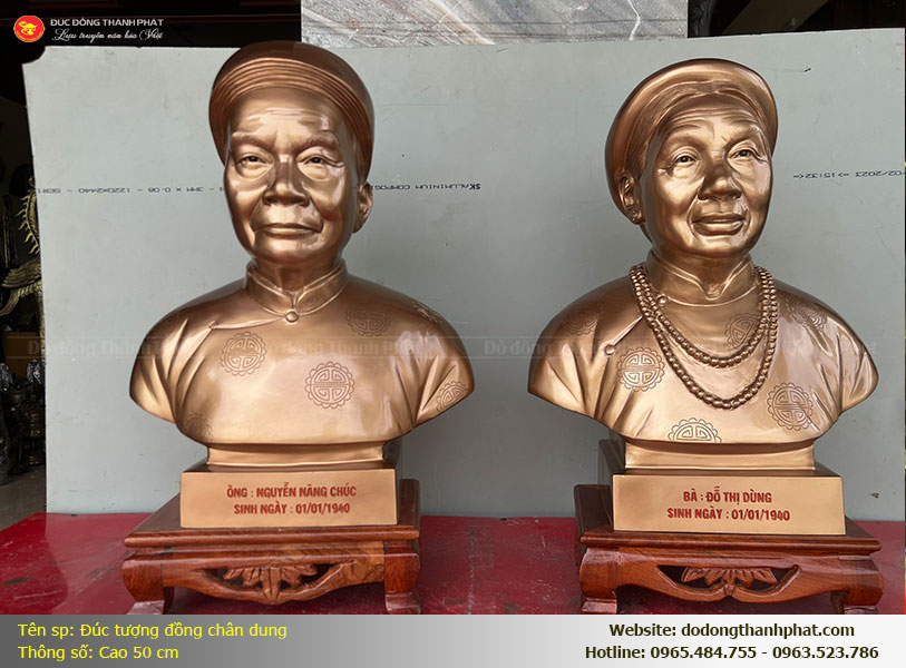 Đúc Tượng Đồng Chân Dung Tượng chân dung bằng đồng thường là tượng bán thân, nhưng cũng có thể là tượng toàn thân. Tượng chân dung có thể được đặt ở nhiều nơi khác nhau như nhà thờ dòng họ, đền chùa, hoặc trong các công trình công cộng. Chúng tôi luôn đáp ứng mọi yêu cầu của khách hàng, từ việc tạo tượng chân dung ngồi ghế tựa đến tượng đứng.