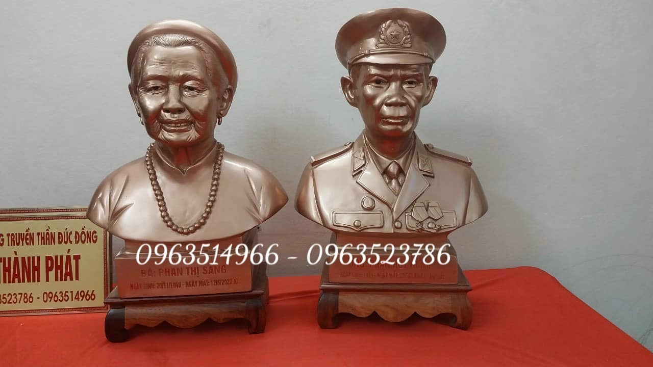 Giống như tấm hình chân dung, tượng chân dung bằng đồng thường là tượng bán thân, tuy nhiên một số khách hàng đặt đúc tượng chân dung ngồi ghế tựa hoặc đứng để đặt trong nhà thờ dòng họ. Đồ đồng Thành Phát luôn đáp ứng mọi yêu cầu của quý khách.