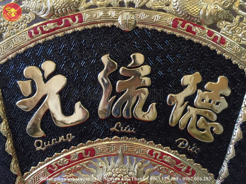 Cuốn thư được khảm chữ Hán Nôm " Đức Lưu Quang " bằng đồng vàng, đồng đỏ
