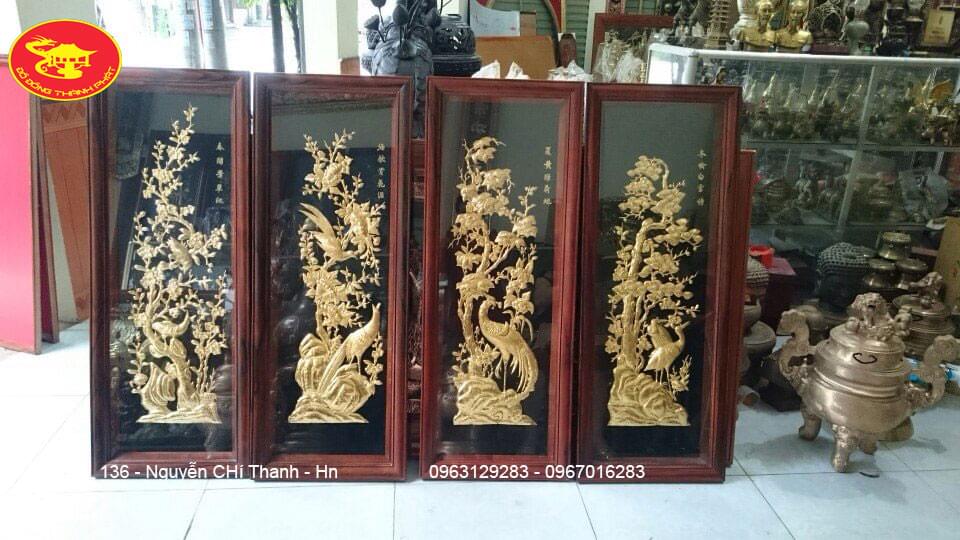 Tranh Đồng Tứ Quý Thiếp vàng 9999