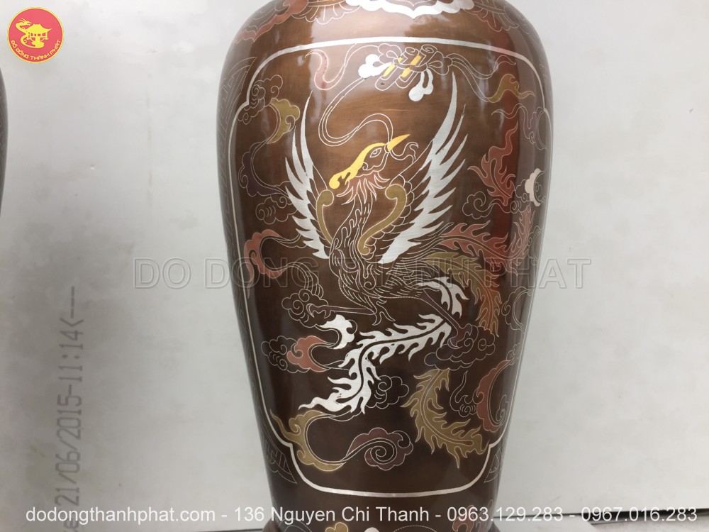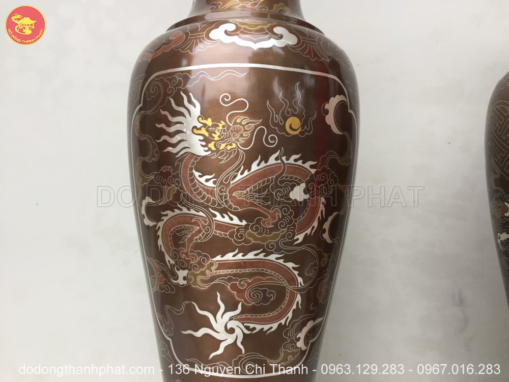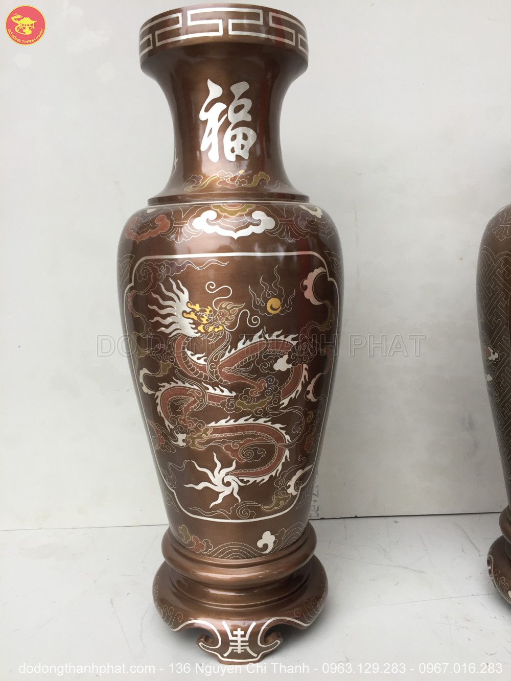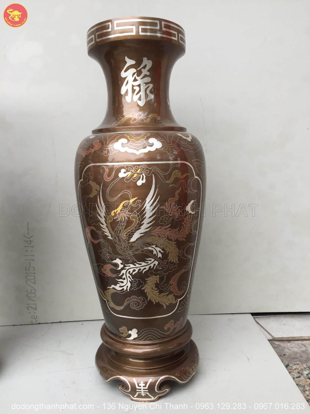Lọ hoa bằng đồng khảm ngũ sắc long phụng cao 55 cm