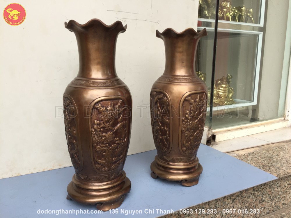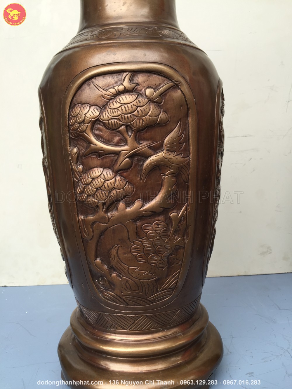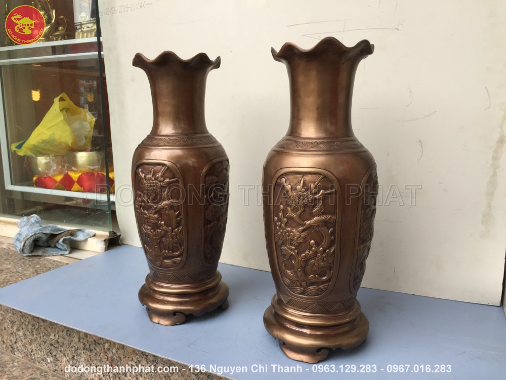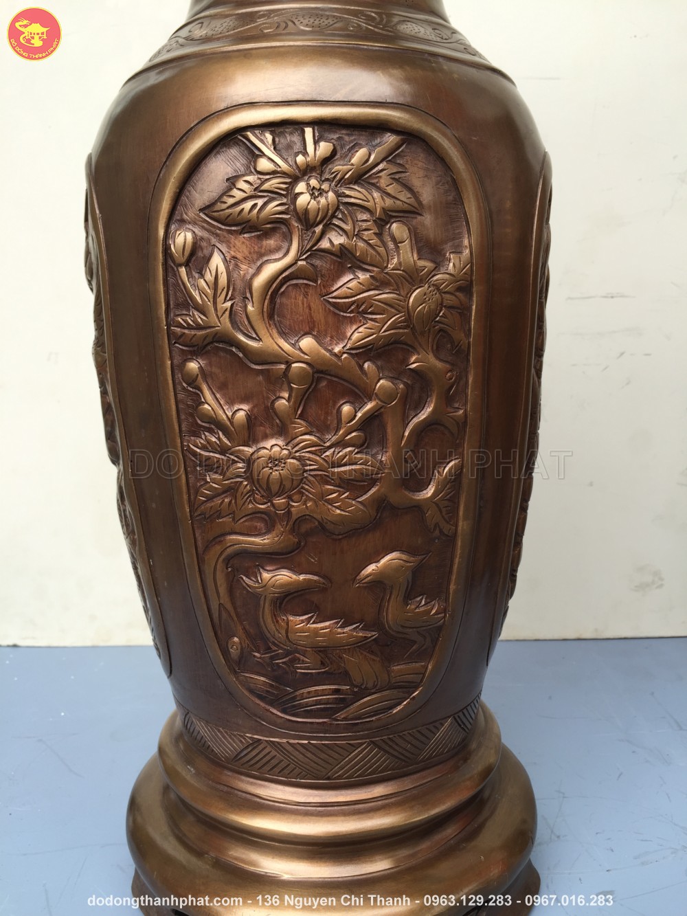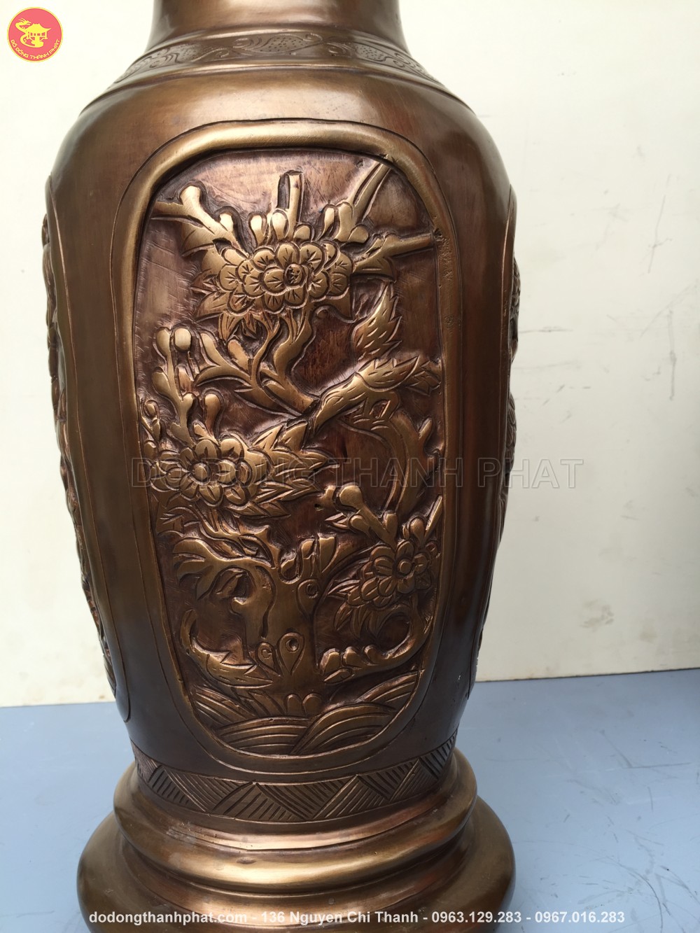 Lọ hoa tứ quý Tùng Cúc Trúc Mai bằng đồng cao 55 cm