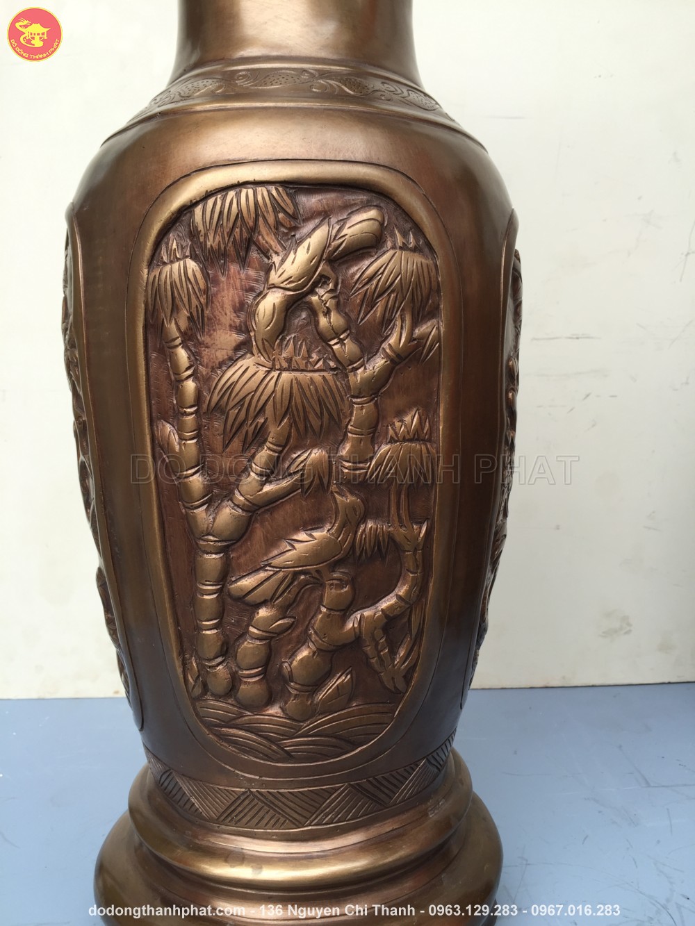 Chi tiết lọ hoa tứ quý Tùng Cúc Trúc Mai bằng đồng