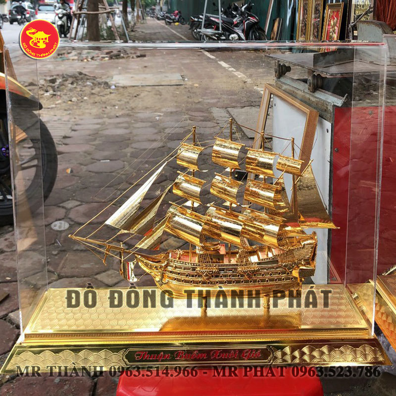 - Phương pháp sản xuất: đúc đồng thủ công truyền thống bởi những người thợ làng nghề đúc đồng. Sau khi được hoàn thành quy trình đúc, mô hình thuyền buồm được gia công sửa nguội kỹ lưỡng. Sản phẩm được phủ vàng ròng cao cấp lên toàn bộ bề mặt thuyền.