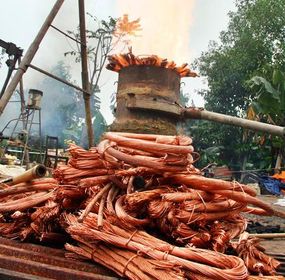 Đồng đỏ dây cáp điện cỡ lớn nguyên liệu đồng nguyên chất được dùng để đúc chuông đồng có tiếng va xa