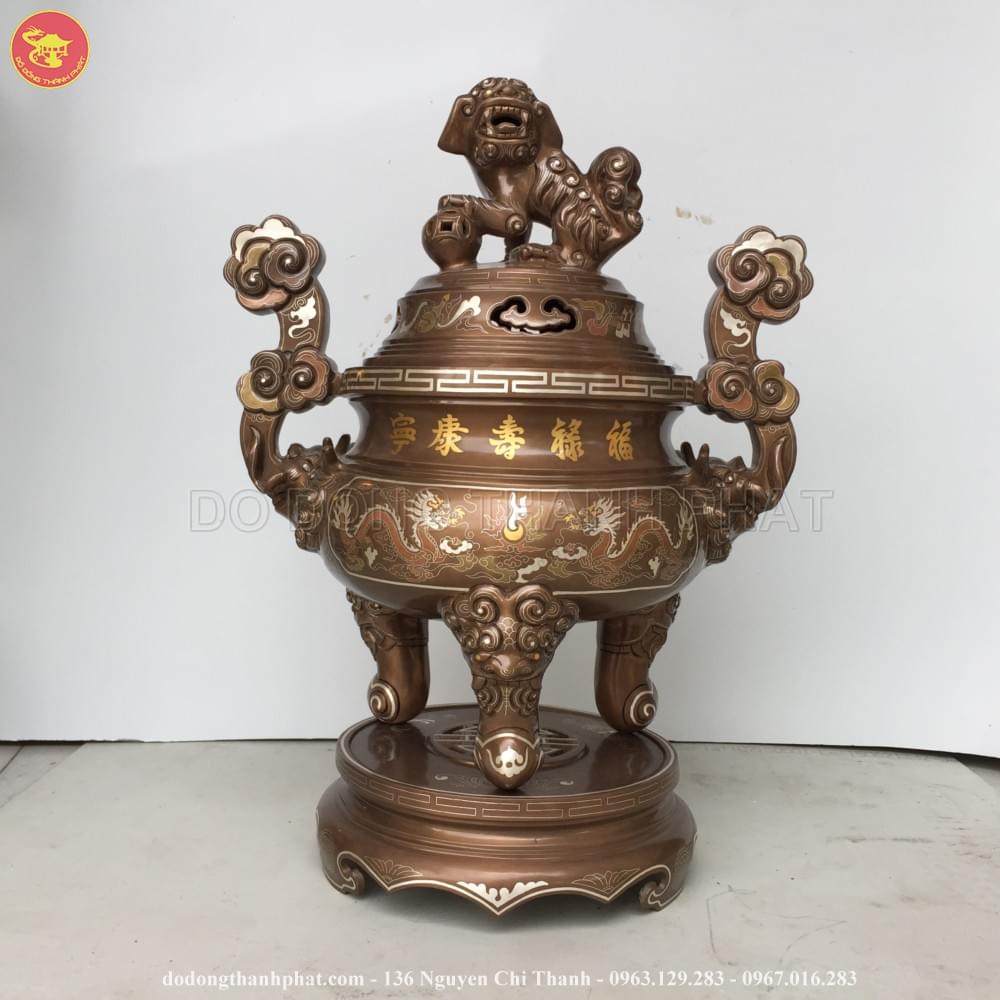 Đỉnh đồng khảm ngũ sắc 5 chữ vàng