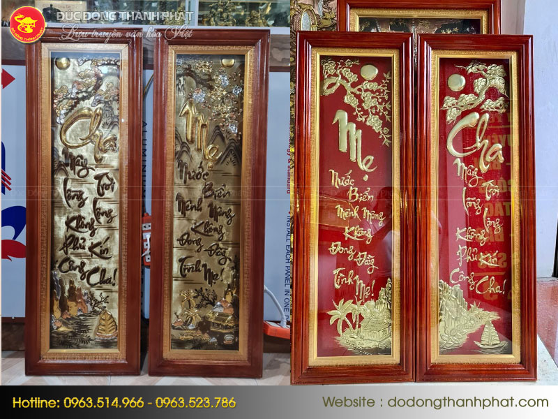 Ngoài bộ 3 chữ Phúc - Lộc - Thọ, quý khách có thể tham khảo thêm bộ câu đối bằng đồng rất hay về công cha nghĩa mẹ