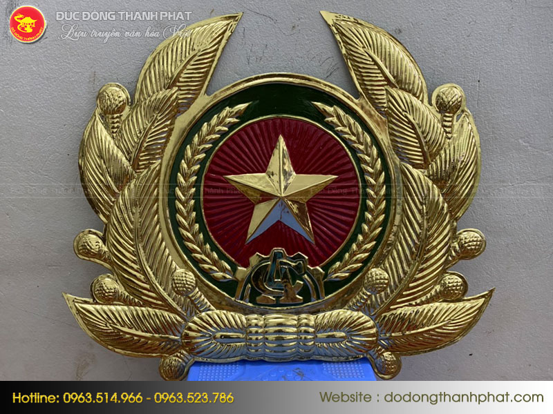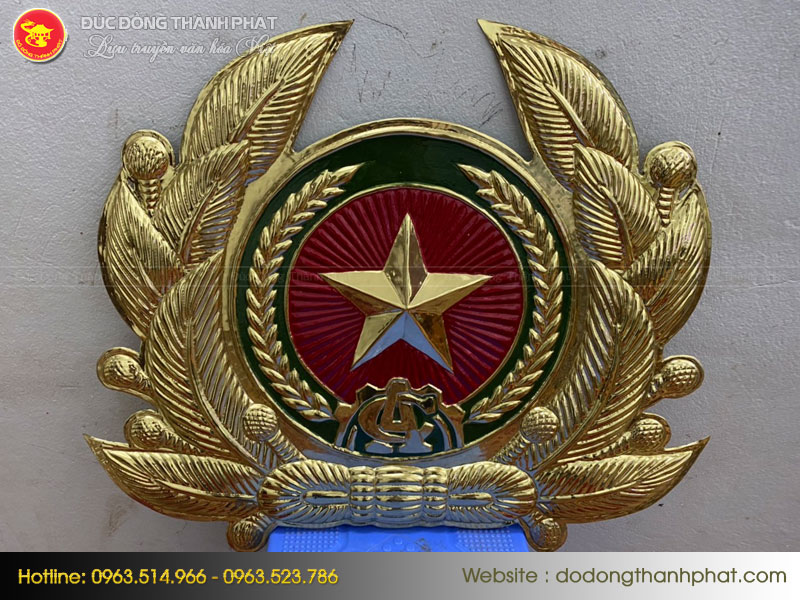 Đồ đồng Thành Phát xin giới thiệu sản phẩm mới của chúng tôi: Quốc Hiệu Công An Nhân Dân Bằng Đồng với biểu tượng ngôi sao lá lúa bằng đồng được xem là biểu tượng thường được các cơ quan cấp huyện, cấp tỉnh bên ngành công an nhân dân được xem là biểu tượng cảu ngành được treo trong phòng hội nghị hoặc trong văn phòng làm việc cảu phòng công an, cảnh sát với các cấp quận, huyện, biểu tượng quốc huy công an nhân dân bằng đồng có kích thước ngang 60 cm, chiều cao quốc huy bằng đồng cao 50 cm mẫu quốc hiệu bằng đồng trong ngành công an, quý khách muốn đặt quốc huy bằng đồng, quốc hiệu công an bằng đồng có thể liên hệ với xưởng đúc đồng Thành Phát: 0963514966 - 0963523786 ( zalo ).