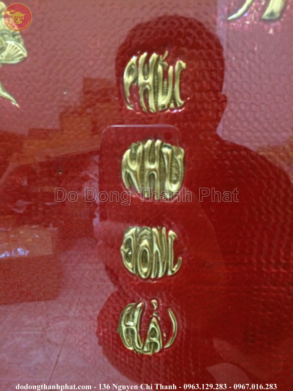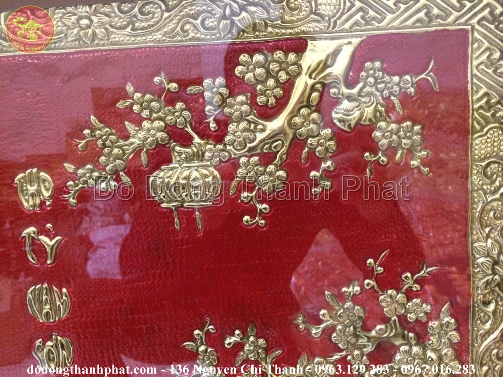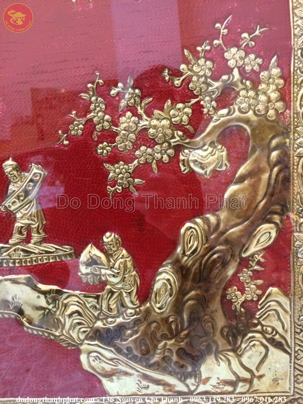 Chất liệu: Đồng vàng nguyên chất nền đồng đỏ, khung gỗ đẹp