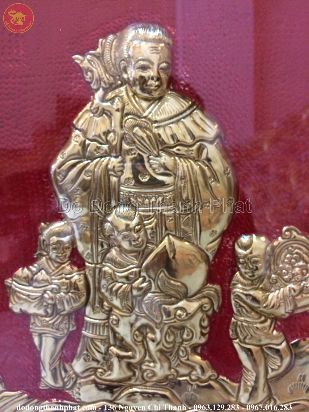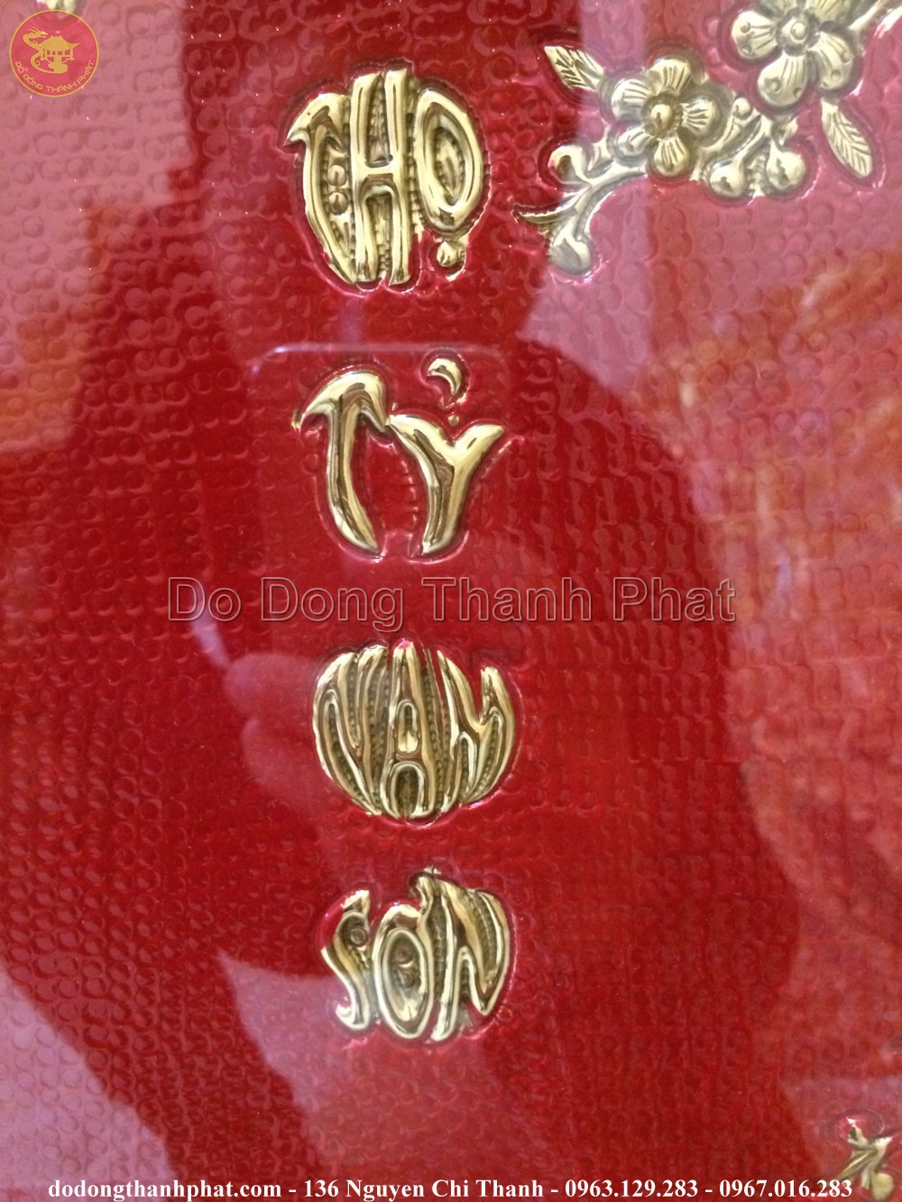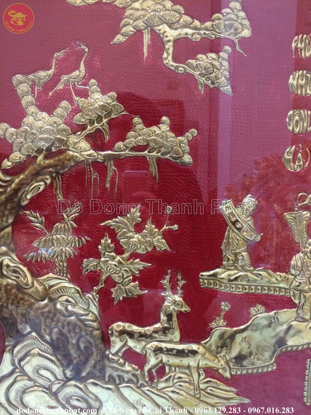 Chất liệu: Đồng vàng nguyên chất nền đồng đỏ, khung gỗ đẹp