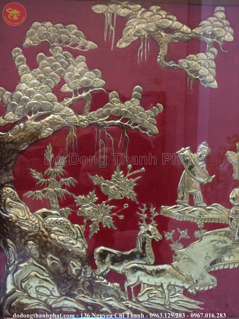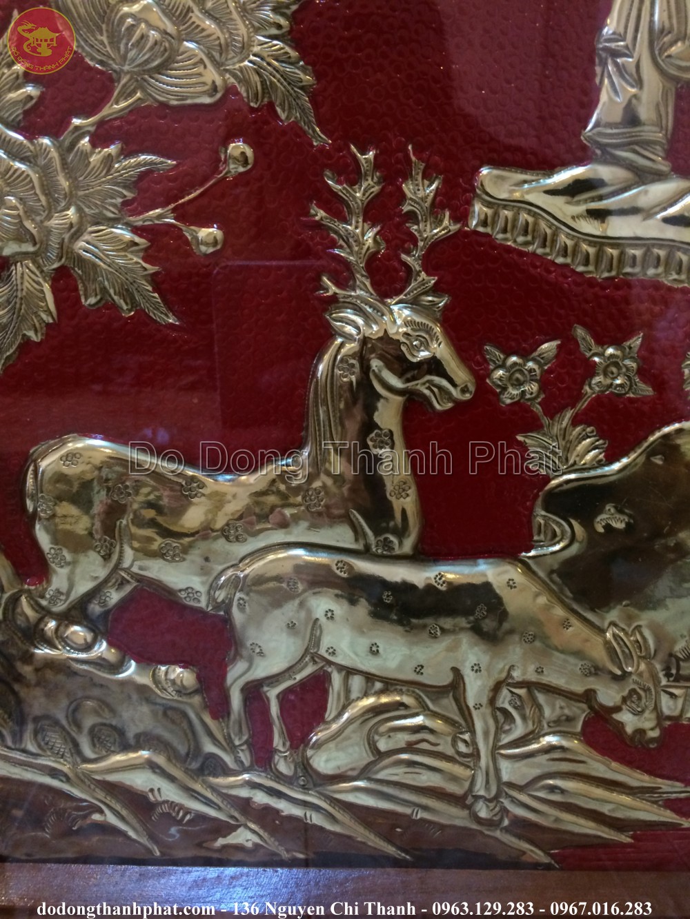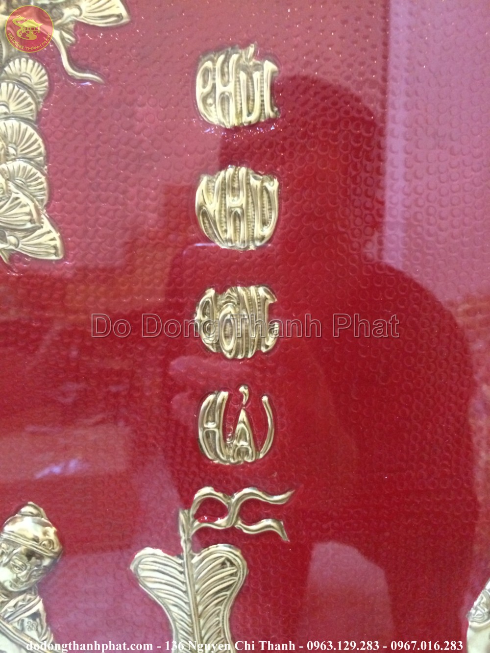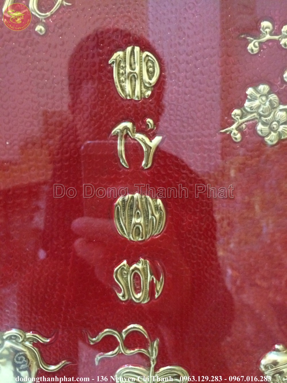 Chất liệu: Đồng vàng nguyên chất nền đỏ, khung gỗ đẹp