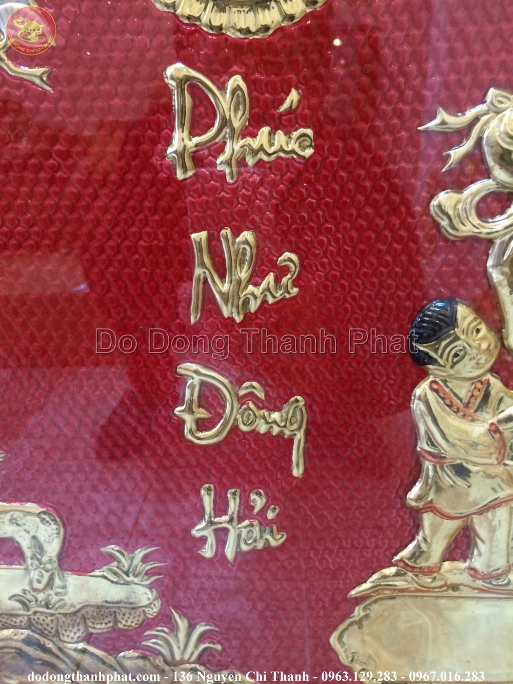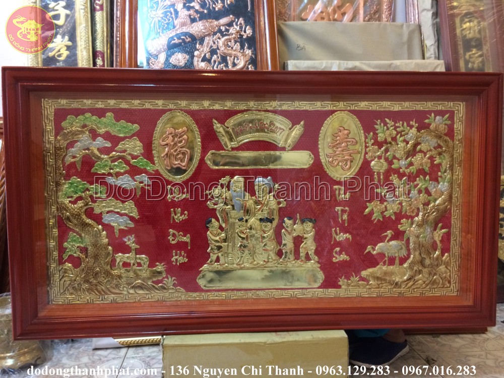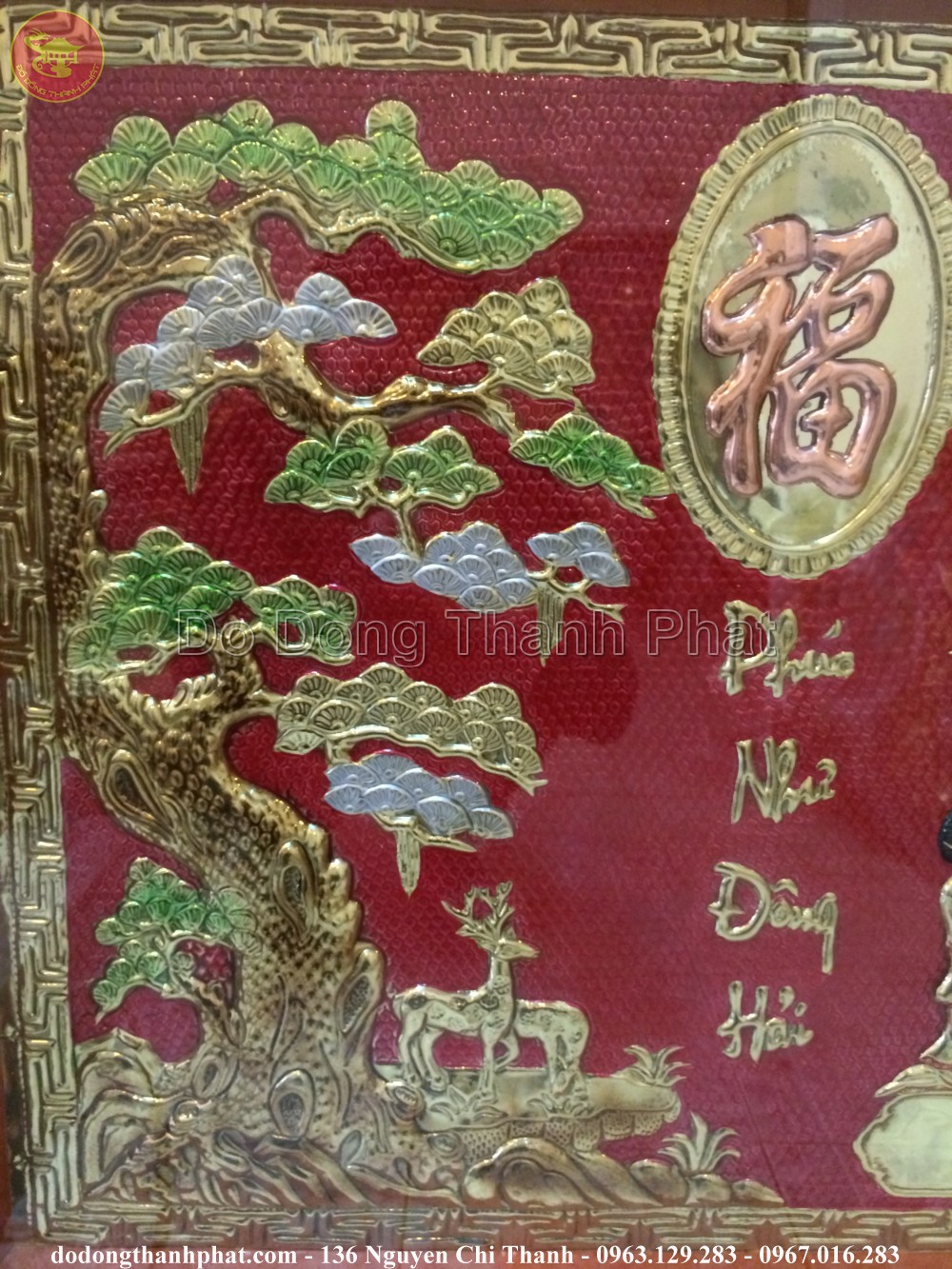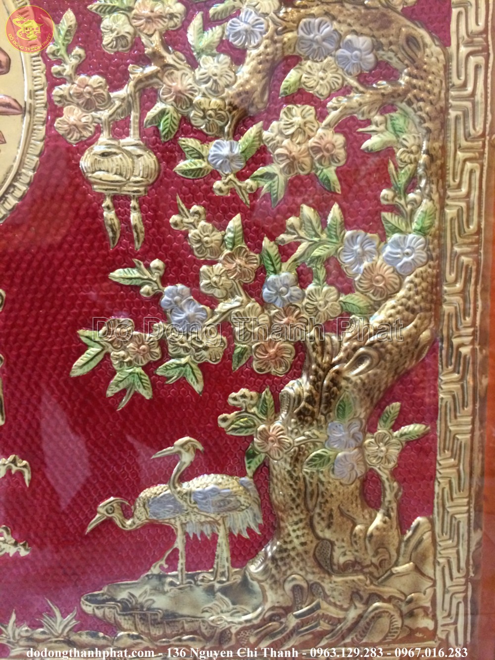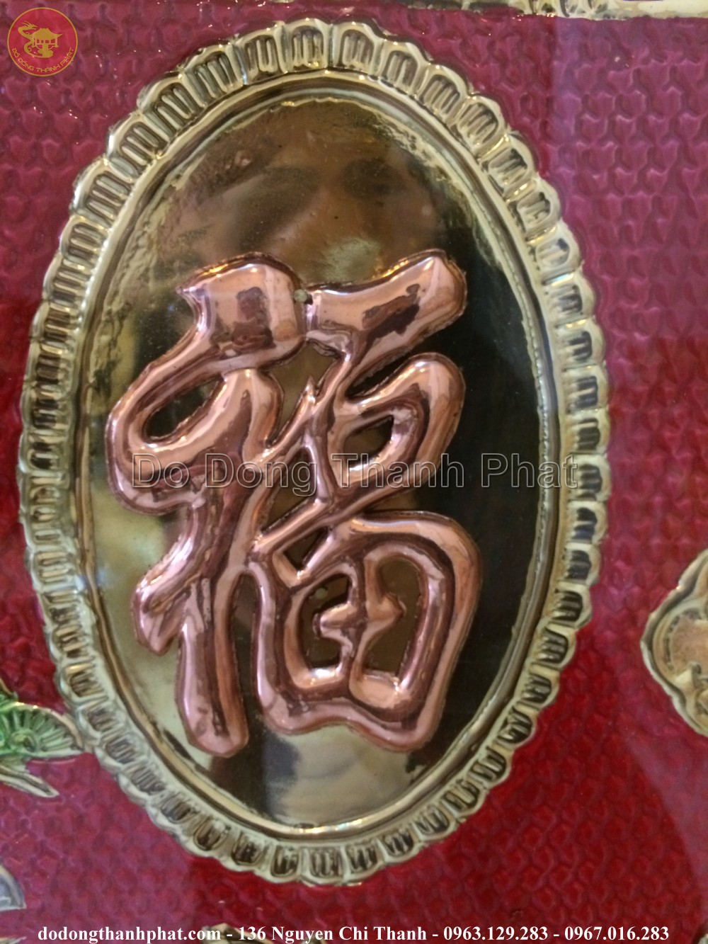 Chất liệu: Đồng vàng nguyên chất trên nền đồng đỏ, khung gỗ đẹp