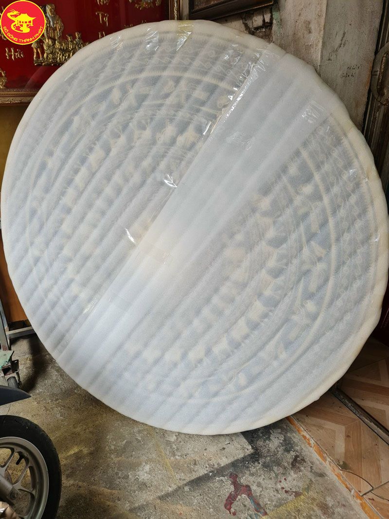 bức tranh mặt trống đồng đông sơn được hoàn thiện bọc bàn giao chuyển khách mặt trống đồng đk 1,6 m