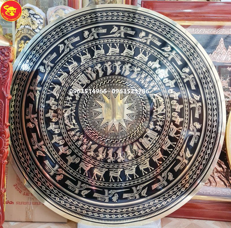 Tranh mặt trống đồng đông sơn treo phòng khách hội nghị đẹp hoàn thiện cho khách Lâm Đồng Đà Lát trống đồng đk 1,6 m