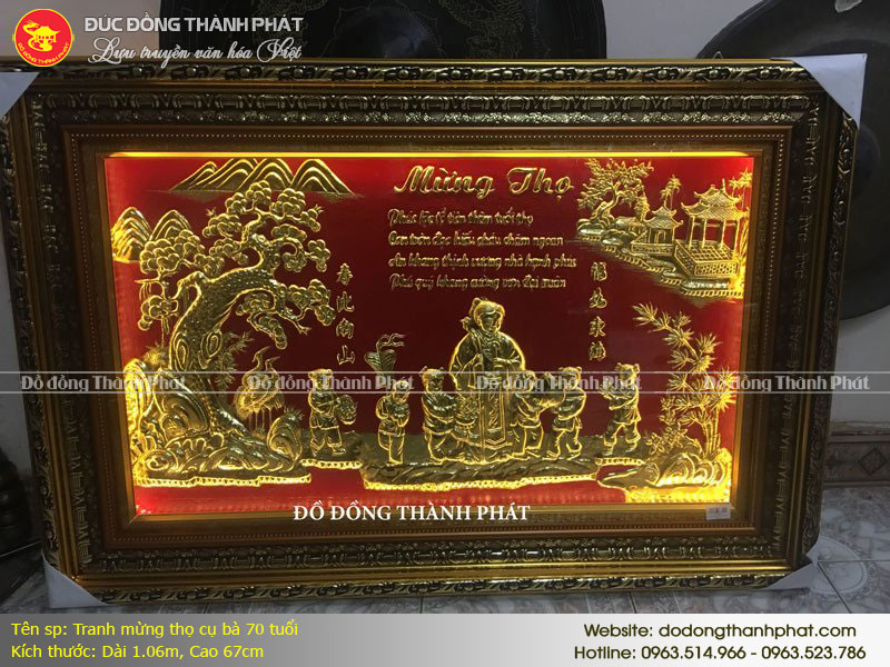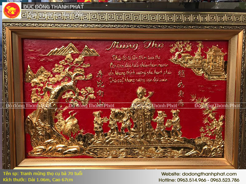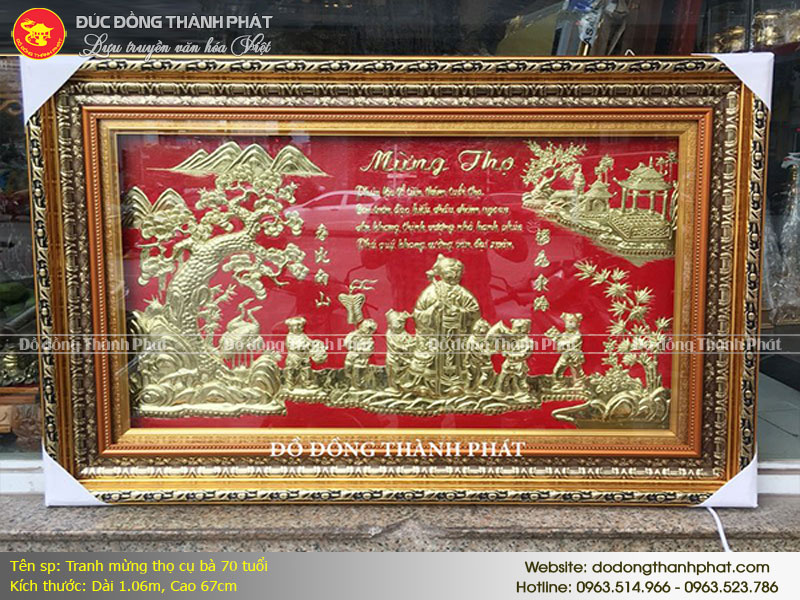 Tranh mừng thọ cụ bà 70 tuổi bằng đồng