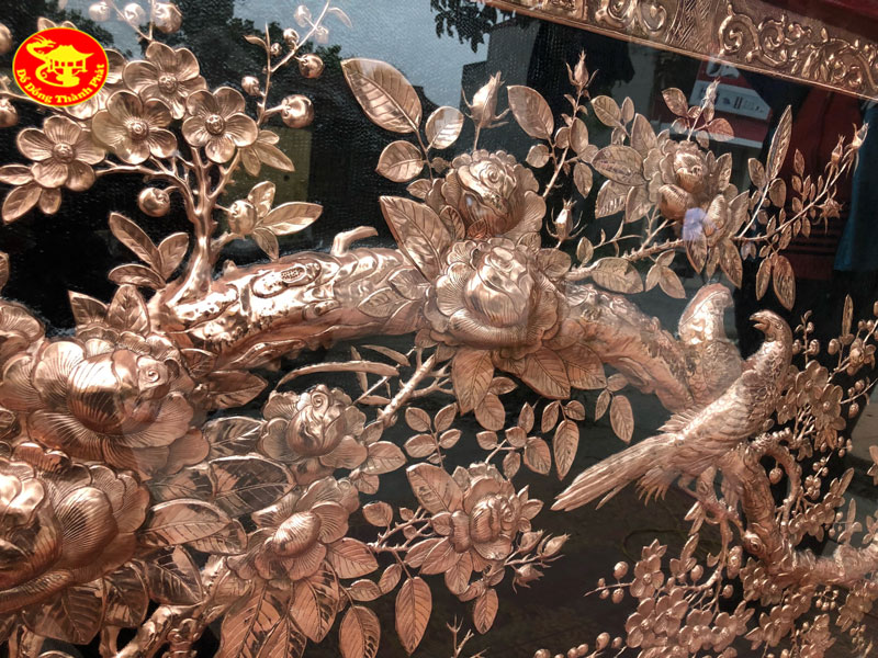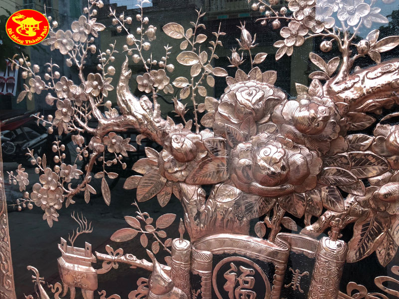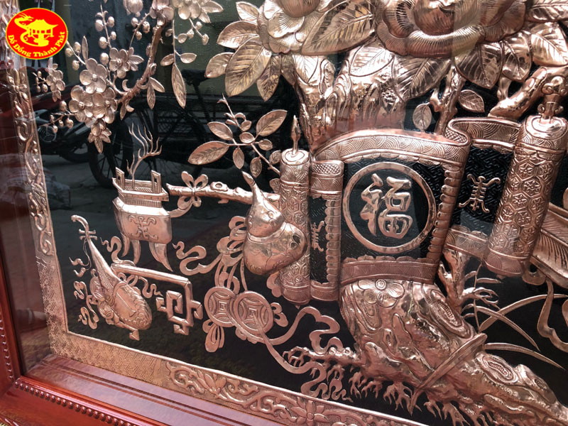 Chi tiết Tranh Vinh Hoa Phú Quý Bằng Đồng Đỏ: