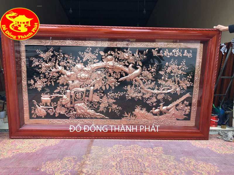 TRANH VINH HOA PHÚ QUÝ BẰNG ĐỒNG ĐỎ ĐẸP DÀI 2,3M RỘNG 1,3 M