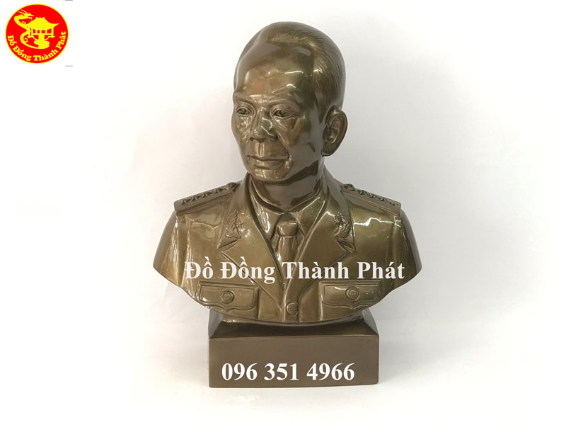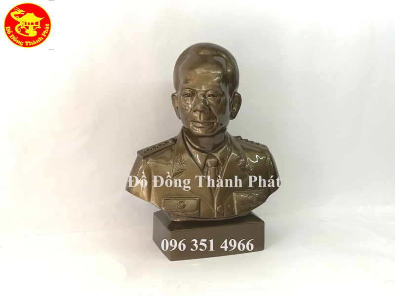 Tượng chân dung bán thân đại tướng Võ Nguyên Giáp được sản xuất tại xưởng đúc đồng thành phát tượng được đúc đồng thủ công bằng khối đồng đỏ đẹp ,Bề mặt pho tượng không sộc rỗ, không tỳ vết được trà bóng tỉ mỉ . tượng cao 40cm