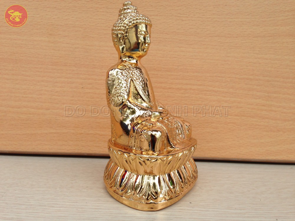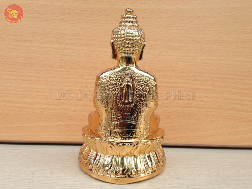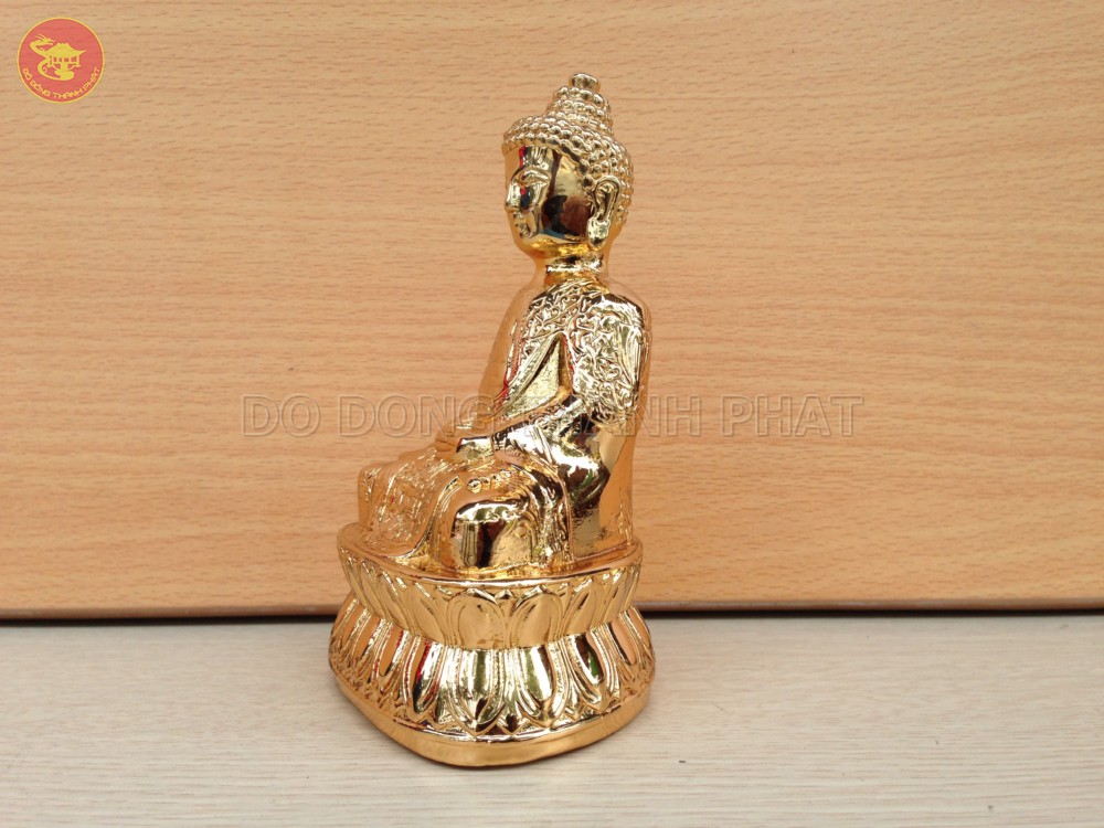 Tượng phật bằng đồng Thích Ca Mâu Ni được đúc vàng nguyên chất, tượng có chiều cao 23 cm đang ngồi thiền trên đài sen. Tượng được các nghệ nhân đúc đồng Thành Phát đúc thủ công truyền thống khảm chạm rất chi tiết và tinh xảo từng nét hoa văn.
