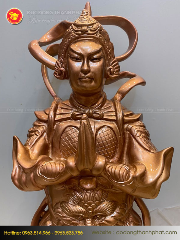 Bức tượng ngài hộ pháp bằng đồng cao 61 cm được đúc bằng đồng đỏ cao cấp, là một trong hai pho tượng được khách hàng đặt để bài trí phòng thờ phật của gia đình. Với tay nghề điêu luyện của các nghệ nhân đồ đồng Thành Phát đã cho ra sản phẩm tượng với những đường nét sắc sảo, tuyệt đẹp