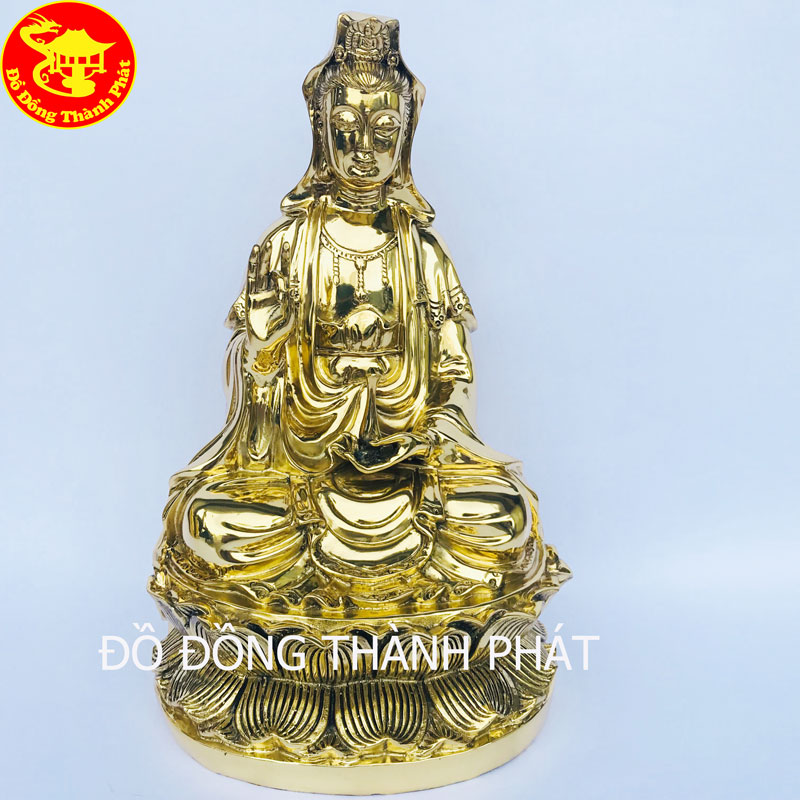 - Chi tiết nổi bật: Tượng phật quán thế âm bồ tát đồng vàng được các nghệ nhân đúc đồng tạo ra bằng loại đồng vàng hay còn gọi là đồng thau cao cấp. Tượng có chiều cao 25 cm, Tượng phật quán thế âm bồ tát ngồi trên đài sen được chạm các chi tiết vô cùng tinh xảo và tỉ mỉ từng nét.