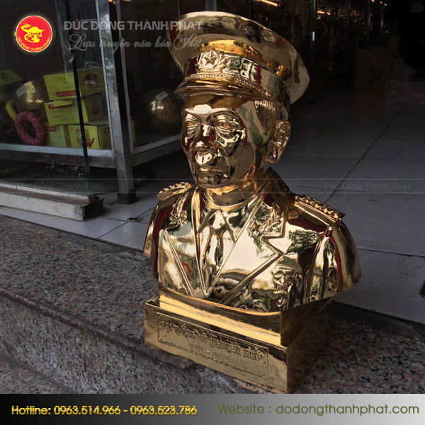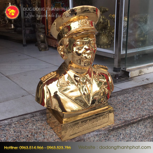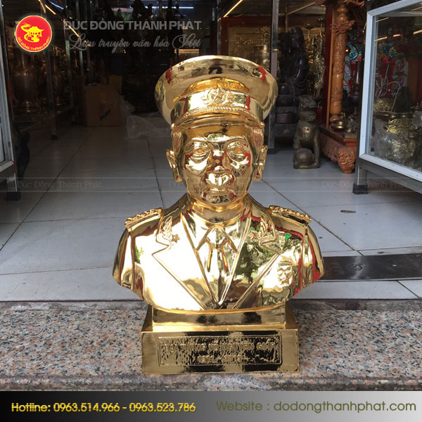 Được làm bằng chất liệu đồng cao cấp, tượng Tượng Võ Nguyên Giáp mạ vàng khắc họa vị đại tướng lẫy lừng thế giới với chiến thắng Điện Biên Phủ có ý nghĩa chiến lược mở ra hiệp định đàn phán cho dân tộc Việt Nam. Tượng với nhiều kích thước khác nhau thích hợp cho từng không gian riêng.. Chất liệu tượng bằng đồng đỏ cao cấp, sau đó đồ đồng Thành Phát sẽ tiến hành mạ vàng 9999 lên bề mặt sản phẩm
