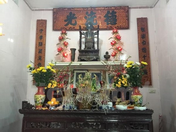 Bộ đồ thờ cúng đồng trên ban thờ gia tiên của người việt.