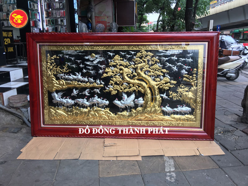 - Tên sản phẩm: Tranh đồng phong thủy Bách Hạc Quần Tùng mạ vàng, bạc