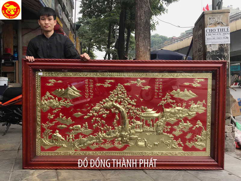 --->>> Mẫu Tranh đông quê bằng đồng là dòng tranh nghệ thuật, tranh được làm từ nguyên liệu đồng vàng nguyên chất nhập khẩu Hàn Quốc, với độ dạy..., bề mặt của bức tranh đồng được phủ vàng 24k, tạo sự sang trọng, cũng như độ bền, bóng của bề mặt tranh, với tay nghề cao, bức tranh tạo nên từ sự dày công tỉ mỉ nhiều chi tiết và chạm khắc điêu luyện của các nghệ nhân đồ đồng Thành Phát đã hút hồn người xem ngay lần đầu tiên, các chi tiết trong tranh được phác họa và dày công mài dũa, hình ảnh chi tết sắc nét, rõ ràng khi phân biệt. Bức tranh đồng làng quê bằng đồng được bao bọc bởi khung gỗ thịt tự nhiên ( trò, gụ, hương ) chắc chắn, phủ sơn chống thấm, tạo nên sự sang trọng cho bức tranh đồng đẹp.